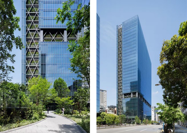 最高賞に当たる「国土交通大臣賞」には、積水ハウス(株)・日本生命保険相互会社らによる「赤坂グリーンクロス」(東京都港区)が選ばれた。駅まち一体開発と総合設計制度を活用し、公開空地、輻射熱抑制など多様な植栽構成の壁面緑化を施し、超高層ビルの壁面緑化ファサードと意匠・構造・設備と融合した高度な緑化技術が高く評価された。国土交通大臣賞はもう1点、大阪・関西万博の「大屋根リング」(大阪市此花区)が選ばれ、(公社)2025年日本国際博覧会協会や建築家の藤本壮介氏らが受賞した。
