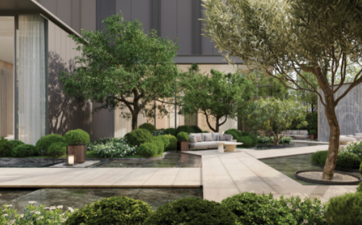 共用部には216台分の自走式駐車場をはじめ、スカイプール、フィットネスジム、スパなどを用意する。