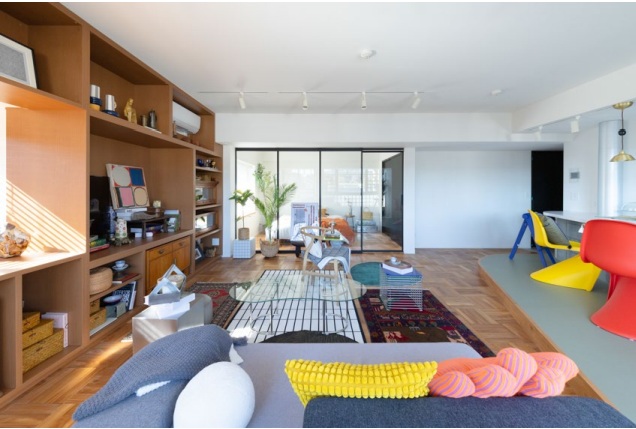 共同プロデュースした物件は「コスモ世田谷」(東京都世田谷区)の一室。“ものが好きな、物好きのための理想の家”をコンセプトに、工芸やアート、人形、本、器など、住む人が自分の好きなもので生活空間を満たすことができる空間をつくった。リビングでは、従来からあった窓を生かしつつ、壁一面の飾り棚にヨーロッパのアンティーク什器を埋め込んだ。また、多治見のデッドストックタイルを使った窓台を設け、読書やアート、グリーンを育てるスペースとしても利用できるようにした。