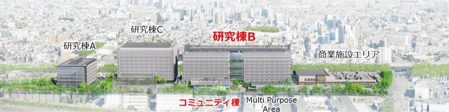「(仮称)南渡田北地区北側開発」はその先陣を切るもの。JR南武支線・鶴見線「浜川崎」駅徒歩3分に立地。面積約5.6haの敷地に、研究施設3棟(A~C)のほか研究者が日常使いできる商業施設エリアを整備する。延床面積は、研究棟A(8階建て)が約1万3,340平方メートル、研究棟B(9階建て)が約6万2,000平方メートル、研究棟C(10階建て)が約2万平方メートル、寄宿舎棟(5階建て)が約3,900平方メートル、商業棟(2階建て)が約7,600平方メートル。