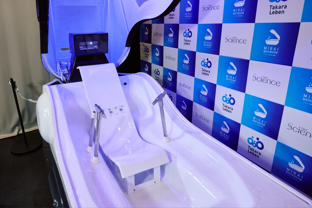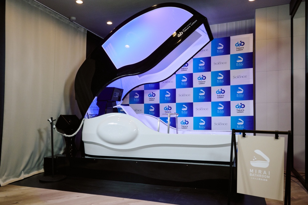 (株)タカラレーベンは、(株)サイエンスが開発し、「2025大阪・関西万博」で展示された「ミライ人間洗濯機」を総合マンションギャラリー「レーベンサロン池袋」(東京都豊島区)に設置すると発表。22日、報道陣にデモンストレーションを公開した。