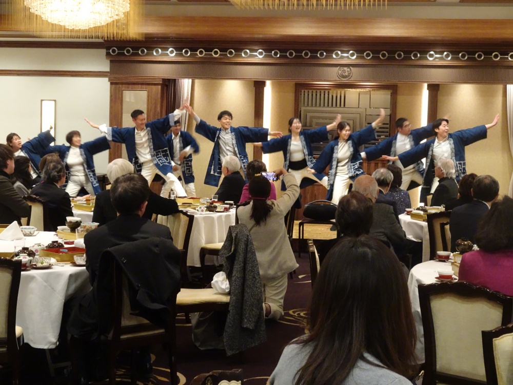 第二部では、大里綜合管理(株)(千葉県大網白里市、代表取締役会長:野老 真理子氏(同塾副塾長))が、合唱・ヒップホップ・ソーラン節を披露。会場は大いに盛り上がった。
