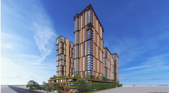 敷地面積は約3万4,000平方メートル。地上21~30階建ての8棟構成で、分譲マンションと商業施設からなる。