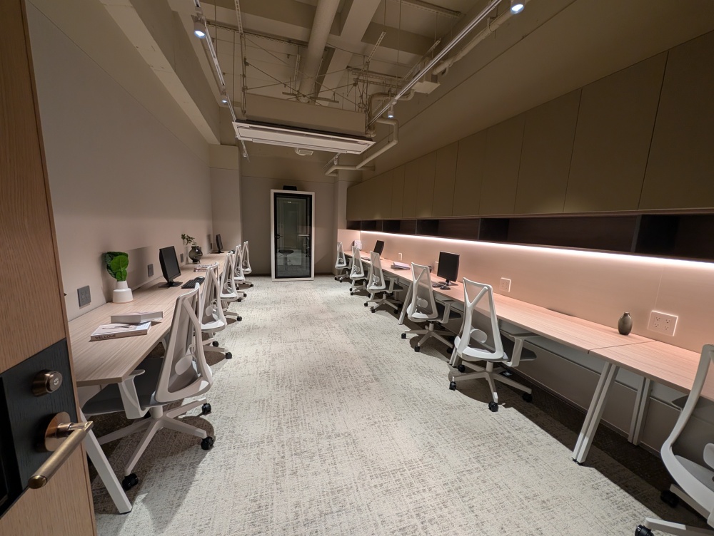 2~4階がシェアオフィスで、2席から20席までさまざまなサイズの専用個室を用意している。5・7・8階はハーフセットオフィスとして1フロア1テナントに貸し出す。各フロアには専用ラウンジや会議室を用意し、執務エリアについては自由にレイアウトできる仕様とした。