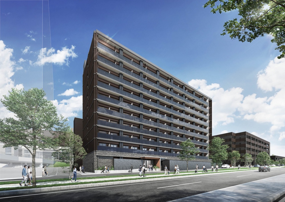 2028年開業予定のJR千歳線新駅から徒歩3分、「ES CON FIELD HOKKAIDO」から徒歩4分の「北海道ボールパークFビレッジ」内に立地。近隣には28年に開校予定の北海道医療大学や、同社が推進する「(仮称)Fビレッジ複合施設」の開業に向けまちづくり計画が進んでおり、同物件は学生や近隣で勤務する社会人向けに開発する。