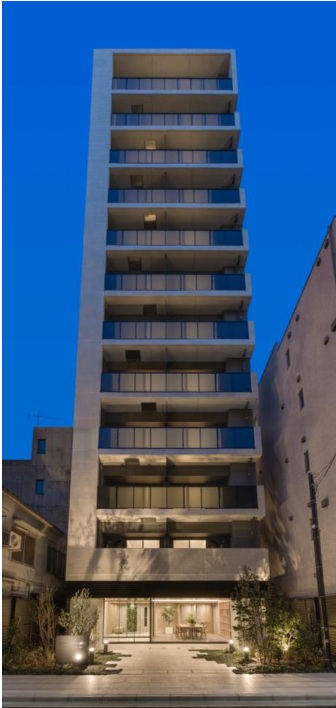 敷地面積約379平方メートル。鉄筋コンクリート造地上12階建て。延床面積は約1,913平方メートル。1階にはエントランスラウンジを設け、木調デザインを採用したことで、温もりを感じられる空間とした。また、無料Wi-Fiと室内空調を完備した入居者専用のビジネスラウンジを用意。個別ブース2ヵ所とワークスペースも用意しており、サードスペースとしても利用できる。