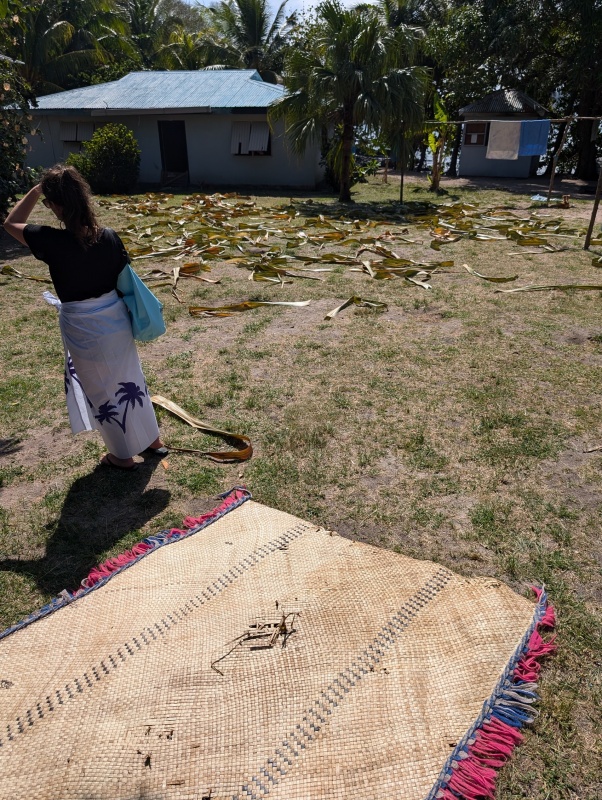 こちらは「大風で飛んできた葉っぱをそのまま放置」……ではなく、天日で乾かしているのです。そして写真手前のようなマットや……