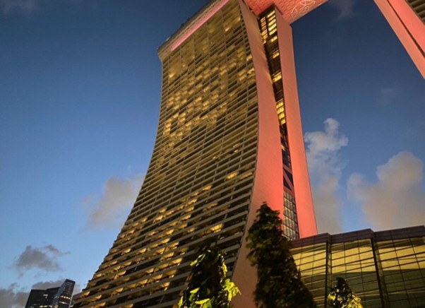 シンガポールにおいて最強の吉数は28です。2は両(りゃん)とも呼びます。両は文字通り「つがい」の意味で増え続けると言う意味です。8は日本でも八は末広がりで吉数ですが、中華文化圏においても八は音が「発」の音とも同じ事もあり「万物が生まれる」と言う意味になり最も尊い数字です。この二つの組み合わせがシンガポールにおいては最強の吉数と考えられております。この28を応用した建築はたくさんあります。まずは高さです。シンガポールで最も高い建物は長いこと、ワンラッフルズ(丹下健三設計)、レパブリックプラザ(黒川紀章設計)、UOBプラザ(丹下健三設計)でした。どれも日本人の設計ですが、建物の高さは280メートルで揃っています。