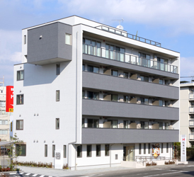 同住宅は、重量鉄骨ラーメン構造6階建て。敷地面積818.17平方メートル、延床面積1,163.07平方メートル。1階は小児科医院、2~4階は計15戸の賃貸住宅、5・6階を自宅とする。
