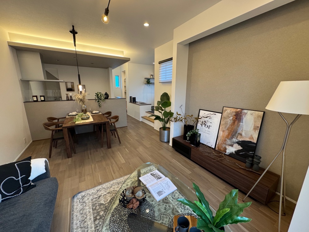 販売価格は4,490万~5,990万円。25年5月からの集客数は61件。8月8日から1期10戸を販売し、4戸が成約済み。2期3戸を10月10日から販売する。購入者は地元在住の30歳後半が中心で、注文住宅との併行検討者が多いという。