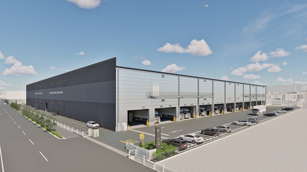 外壁には金属断熱サンドイッチパネルを使用、床荷重1.5t、有効高さは6.0m以上とする。テナント区画は4分割での入居が可能な設計で、最小で約2,430坪から利用できる。竣工は26年9月末の予定。