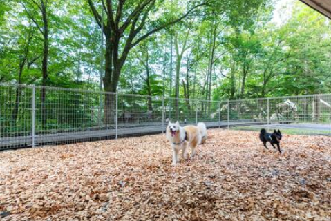 客室は、メゾネットタイプのテラススイート8室(69平方メートル)と、一軒家スタイルのヴィラスイート7棟(72~82平方メートル)を用意。全客室、大型犬を含むすべての犬種が同伴可能で、天然温泉付き。ヴィラスイートには、ウッドチップのプライベートドッグラン(約40~160平方メートル)も併設する。また、別途全犬種用のドッグラン(約80平方メートル)と、小型犬優先のドッグラン(約50平方メートル)も設ける。