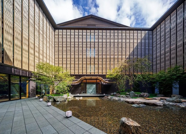 デザインは隈研吾建築都市設計事務所が監修。建物には、「しめ縄」から発想を得たアートをエントランスに設置。ホテルと一体で開発した宮川町歌舞練場に見られる「唐破風屋根」の意匠を中庭に取り入れた。小学校校舎で使用していた建材も再利用している。
