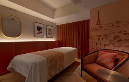 プライベートバス&サウナとスイートは、2人同時に利用が可能。デイユースでは、4時間まで滞在できる。利用料金は、トリートメント(アロマボディケア/フェイシャルケア)が1人2万5,300円~、プライベートバス&サウナが2万円~、スイートが3万5,000円~。空港からの出国前・帰国後のユーザーを意識したオリジナルメニューも設定する。