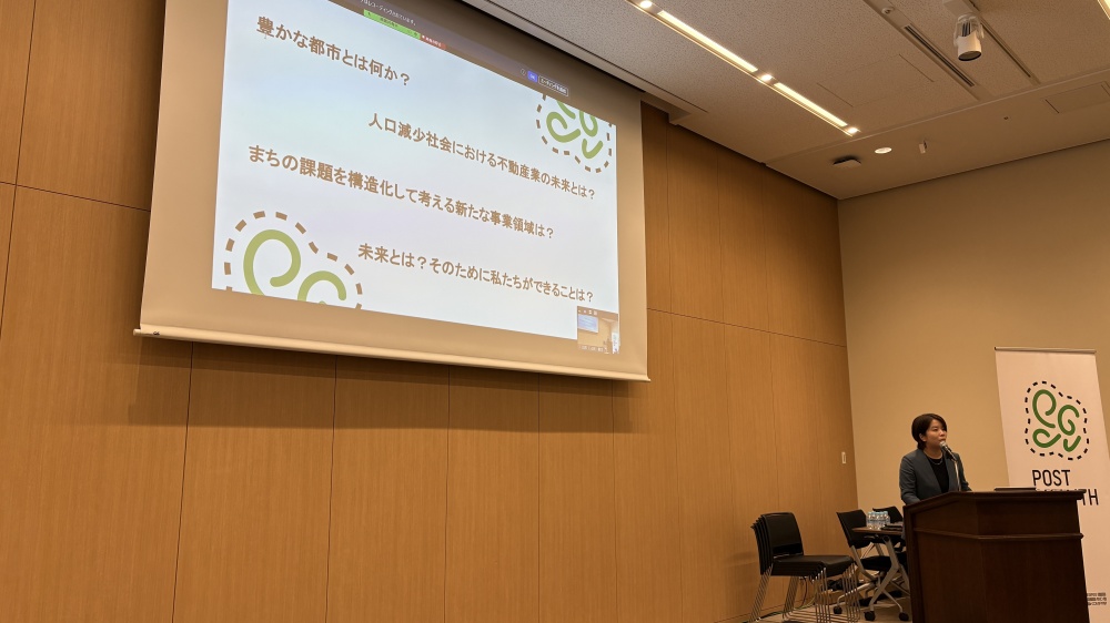 挨拶の後、「人口減少社会と不動産」と「人口減少社会と労働の未来」をテーマにNEWLOCALが行なったマクロリサーチの結果や、大分県別府市でのフィールドワークの成果が紹介された。