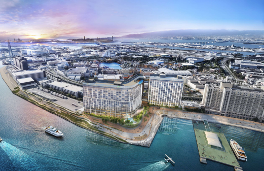 同社は、鹿島建設(株)、日本郵政不動産(株)、SMFL みらいパートナーズ(株)、京阪神ビルディング(株)が共同出資して設立。JR桜島線「ユニバーサルシティ」駅徒歩6分に位置する、西側はUSJ、東側は安治川河口に面する1万7,246平方メートルの敷地に、インターコンチネンタル244室、キンプトン246室、ホリデイ・インリゾート327室で構成される「トリプルブランド」ホテルを建設する。