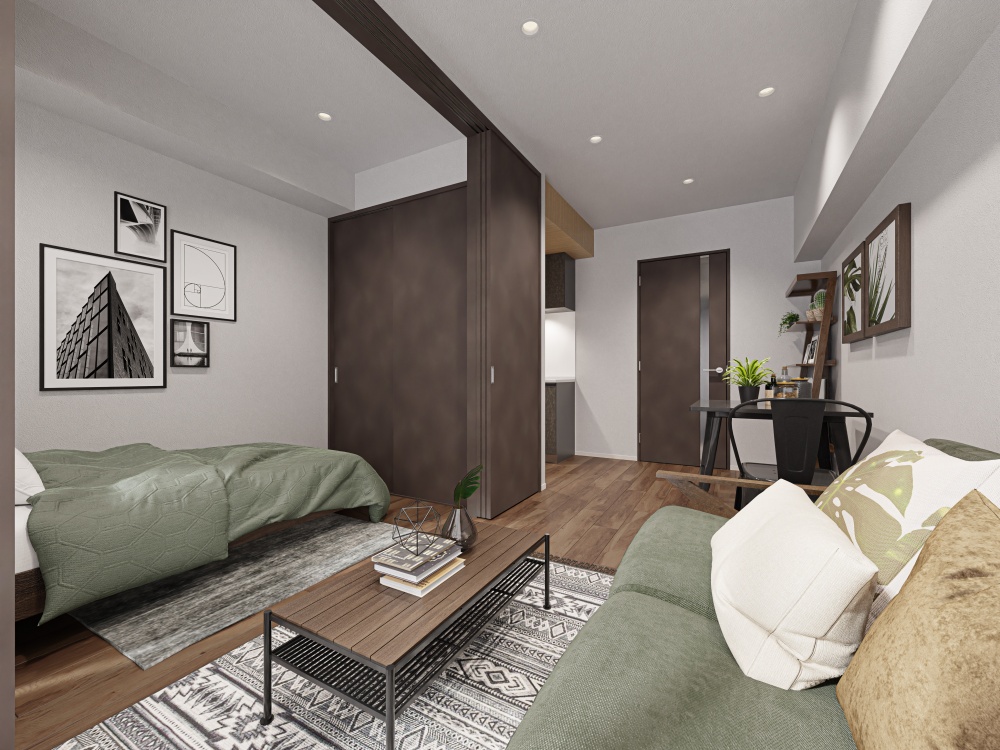 住戸は、間取り1LDK(専有面積30.33平方メートル)が11戸、2LDK(同40.37平方メートル)が11戸。全戸角部屋で、アウトフレーム工法を採用している。全戸全居室にダウンライトを実装し、2LDKタイプにはライン照明も設けた。一部住戸にはウォークインクローゼットも設置。ペット相談可としている。