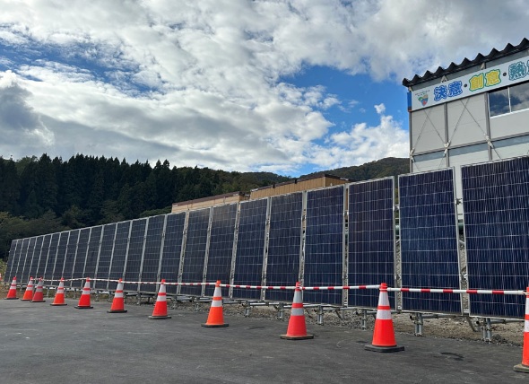 リユースされた太陽光パネルは、清水建設が北海道内で施工を担当する「大沼トンネル峠下工区新設工事」と「(仮称)松前2期陸上風力発電所建設工事」の2ヵ所の現場に設置した。