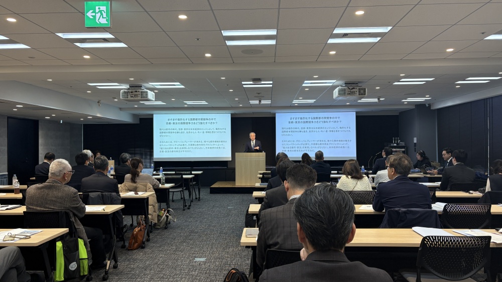 セミナーでは、まず森ビル(株)代表取締役社長の辻 慎吾氏が「磁力ある都市づくり~東京を世界一の都市に~」と題し講演。同氏は、人口減少・高齢化・少子化の三重苦が日本経済の成長のための最大の課題とした上で、「未来を拓くためには、これまで以上に積極的に外需を取り込む必要がある。そのためには、日本経済のエンジンである首都・東京の国際競争力強化が不可欠。東京は世界を引き付ける『磁力』を持たなければならない」と強調。