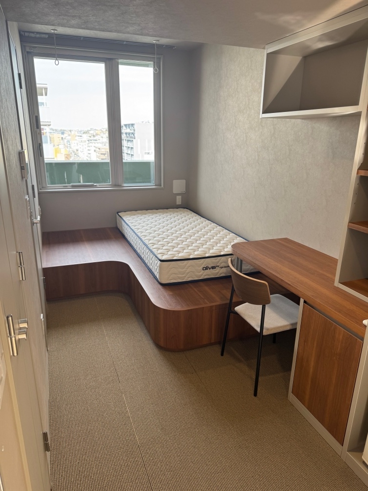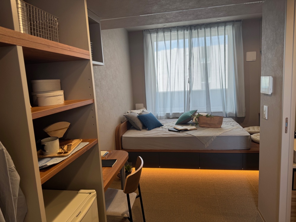 住戸は3タイプ。専有面積約12~13平方メートルが59戸、約18~19平方メートルが2タイプ4戸。スマートロック、全戸キッチンを除いた水回り(シャワーブースもしくは浴室、トイレ、洗面所)、物干しポール、ハンガー、各種収納、ベッド・マットレス、椅子、冷蔵庫などを設置。2戸にダブルサイズのベッドとマットレスを、2戸にはサウナも設置している。