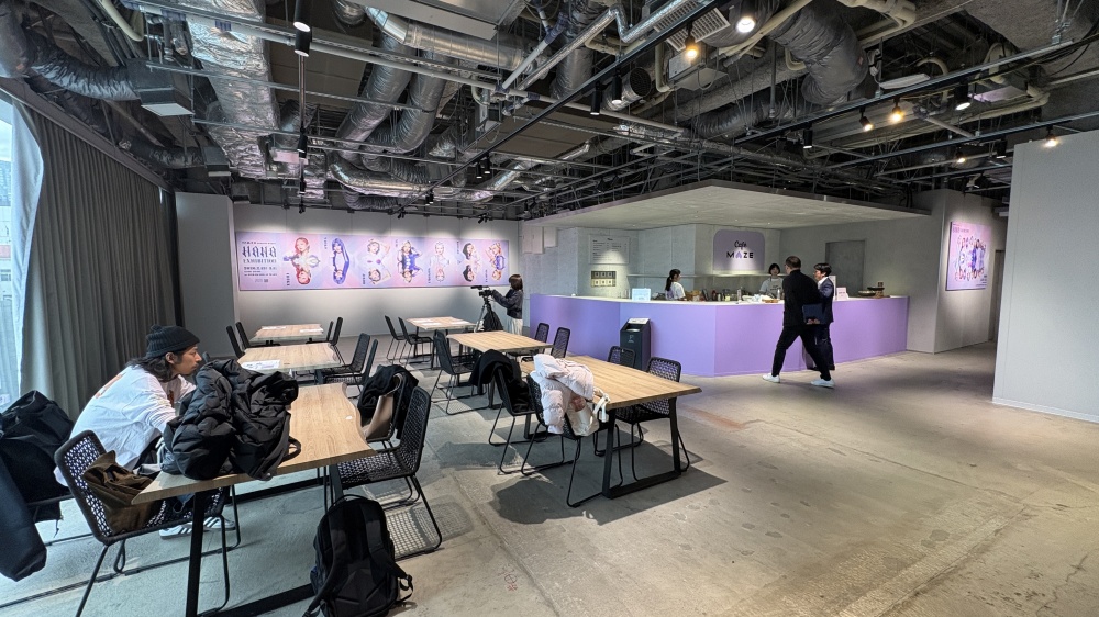 「ハラカド」は、年間で約8,900万人が通行する神宮前交差点の目の前に位置する商業施設。同スペースは広さ約1,000平方メートル(専有部913.6平方メートル)で、有効天井高3m、天高部分7.23m(約45平方メートル)。ライティングレールやスポットライトといった天井照明を備える。高さ2.7m・幅1.5mのスライディングウォール35枚により、従来の壁面施工に比べ設営・撤去時間を短縮し、コスト削減を実現する。また、軽飲食ができる場所としてカフェスペース「CAFE MAZE」も設け、イベント会期中にオープンするほか、開催イベントと合わせたコラボカフェとしての使用も可能としている。