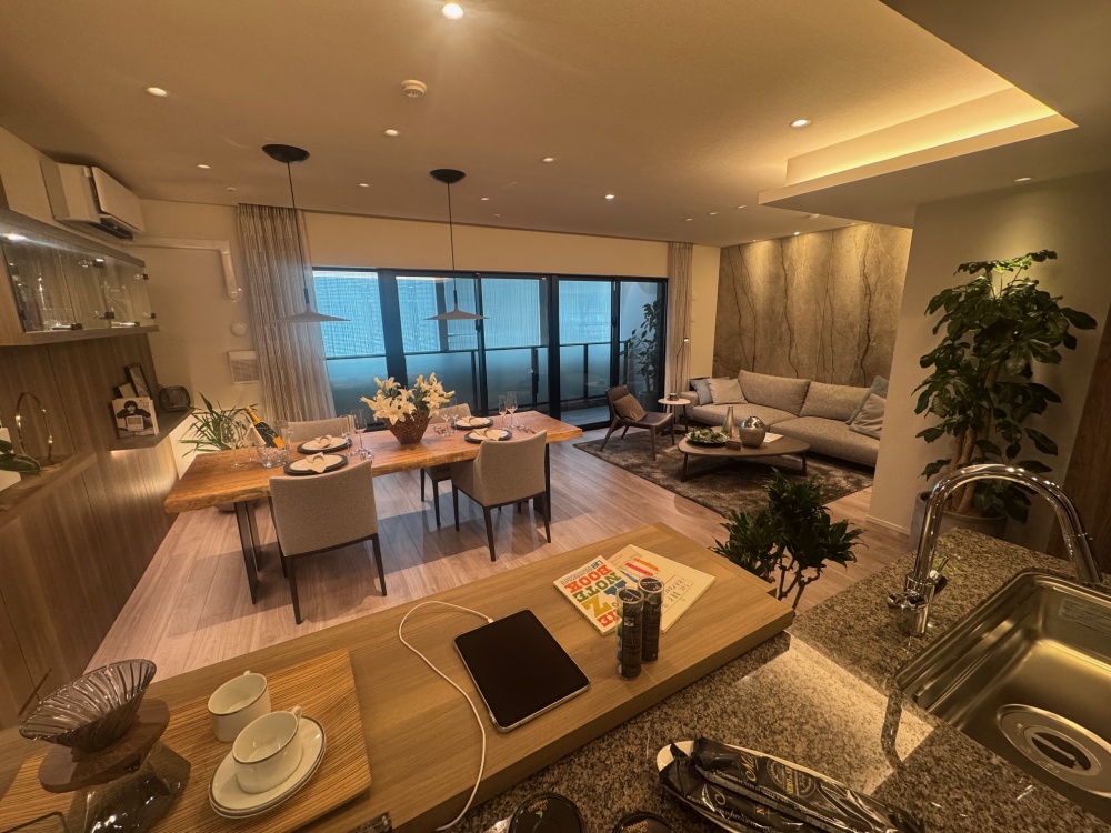 24年10月からエントリー受付を開始し、約2,700件の反響を得ている。25年3月のモデルルームオープンからの来場者数は約420組。同年5月に1期15戸の販売を開始し、これまでに48戸を販売済み。現在先着順で販売中の14戸は、9,498万~1億3,598万円(最多価格帯9,900万円台)。坪単価は597万円。最高価格は2億8,998万円のプレミアム住戸で、すでに販売済み。