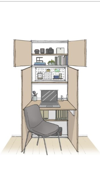 リモートワークの普及により、自宅での作業スペースや、ゆとりのある部屋の広さ等が求められている一方、分譲マンションの専有面積は小さくなる傾向にある。そこで、部屋の中のデッドスペースになりがちな空間に設置でき、省スペースを実現できる同商品を開発した。