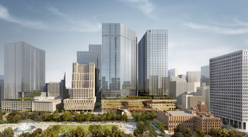 同プロジェクトは、北地区・中地区・南地区の3つの地区で構成。延床面積約110万平方メートルの大規模複合開発。