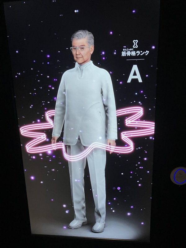全日がブースを出展している「大阪ヘルスケアパビリオン」は大阪メトロ「夢洲」駅に一番近い「東ゲート」近くに位置し、「リボーン体験」を提供している。アプリで登録を済ませると、「カラダ測定ポッド」という小部屋で、目の前の画面の指示に従いながら心血管や筋骨格、髪、肌、脳などの健康データを測定。ちなみに筆者は健康にあまり自信はないのだが、測定結果はおおむね問題はなかった。ただ、なぜかいままで問題なく過ごしてきた「脳」の評価が「D」で少し焦った。そして、その測定データを基に、「25年後の自分」のアバターを生成してくれる。現在47歳の自分の25年後は72歳、アバターはなかなかのイケオジである。