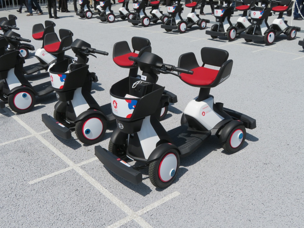 このほか、今回の目玉展示の一つである(株)SkyDriveによる「空飛ぶクルマ」の無人飛行実験が行なわれ、前記した未来の都市パビリオンに隣接したヘリポートで約4分間、離陸・ホバリング・着陸を行なった。このほかにも、広い敷地内移動のためのパーソナルモビリティ貸し出しなど、「移動」にまつわるさまざまなツールも今回の万博の特徴だろう。